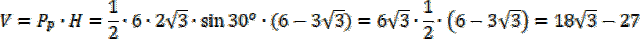 Na koniec oblicz objętość graniastosłupa korzystając ze wzoru na pole trójkąta z sinusem.