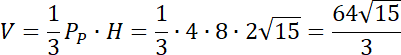 Następnie zauważ, że połowa przekątnej podstawy, wysokość ostrosłupa i krawędź boczna tworzą trójkąt prostokątny. Skorzystaj z funkcji tangens w tym trójkącie i wyznacz długość wysokości ostrosłupa.