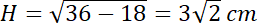 Wyznacz pole rombu, jeśli przekrój ośmiościanu foremnego o krawędzi 6 cm jest płaszczyzną, która przechodzi przez jego dwa przeciwległe wierzchołki oraz środki dwóch przeciwległych krawędzi jest rombem.