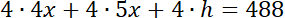 Wyznacz pole podstawy tego prostopadłościanu, jeśli spośród wszystkich prostopadłościanów, których suma długości krawędzi wynosi 488 cm, a stosunek długości krawędzi podstawy jest równy 5:4 wybieramy ten o największym polu powierzchni całkowitej.