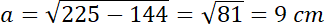 Wyznacz objętość graniastosłupa prostego, którego wysokość jest równa 12 cm, a przekątna ściany bocznej ma długość 15 cm. Jego podstawą jest romb o kącie ostrym