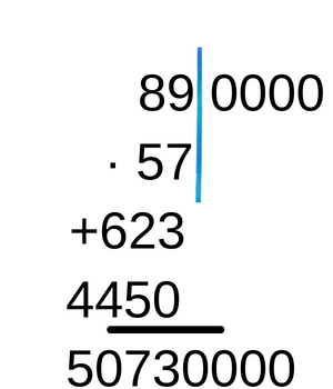 Pomnóż liczby pisemnie. Jeśli przy wykonywaniu mnożenia liczby mają zera na końcu, to możesz te zera wpisać za kreską i wykonać mnożenie bez nich, a na końcu do wyniku dopisać tyle zer, ile jest za kreską. Wykonując mnożenie pisemne przez liczbę wielocyfrową, należy najpierw pomnożyć cyfrę jedności liczby, przez którą mnożysz, przez cyfrę jedności drugiej liczby. Jeśli otrzymana liczba jest dwucyfrowa, należy cyfrę jedności takiego wyniku zapisać pod słupkiem cyfr jedności, a cyfrę dziesiątek z wyniku trzeba przenieść dalej poprzez dopisanie tej cyfry nad kolejnym w lewo słupkiem, czyli słupkiem cyfr dziesiątek. Przy mnożeniu kolejnego słupka, do wyniku dodaje się przeniesioną cyfrę ze słupka wcześniej. W taki sam sposób należy mnożyć każdą kolejną cyfrę, zaczynając od lewej i idąc do prawej. Jeśli w ostatnim słupku wyjdzie liczba większa od 10, to już nie wolno przenosić dalej, bo nie ma kolejnego słupka, lecz należy napisać całą liczbę. Po pomnożeniu przez cyfrę jedności należy wykonać te same operacje, mnożąc przez kolejne cyfry, zaczynając od dziesiątek. Z każdą kolejną cyfrą, przez którą mnożysz w sekcji dodawania, dopisuj z prawej strony jedno zero. Na końcu wykonaj dodawanie pisemne. Dodawaj kolejno każdy ze słupków, począwszy od jedności, a gdy po dodaniu wynik będzie dwucyfrowy, to liczbę jedności zapisz pod tym słupkiem, a liczba dziesiątek przejdzie dalej do następnego słupka. Wykonując dzielenie pisemne, należy najpierw podzielić pierwszą cyfrę od lewej dzielnej przez dzielnik. Jeśli jednak dzielnik nie zmieściłby się w pierwszej cyfrze dzielnej od lewej, to należy wziąć pierwsze dwie cyfry dzielnej i wtedy podzielić je przez zielnik. Wynik z takiego dzielenia należy zapisać nad ostatnią cyfrą dzielnej, która była brana pod uwagę przy obliczeniach. Następnie zapisaną na górze w wyniku cyfrę należy pomnożyć przez dzielnik i zapisać pod liczbami, które dzielono wcześniej i wykonać odejmowanie. Wynik z odejmowania należy zapisać pod tymi liczbami i dopisać do niego kolejną cyfrę z dzielnej, jaka jest w kolejności i powtórzyć te same kroki co wcześniej podczas dzielenia. Dzielenie wykonuje się tak długo, aż nad cyfrą jedności dzielnej będzie w wyniku jakaś cyfra.