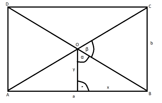 Aby rozwiązać to zadanie stwórz rysunek pomocniczy. Wykorzystaj informacje podane w zadaniu i fakt, że prosta poprowadzona od punktu przecięcia przekątnych prostokąta do któregoś z boków dzieli ten bok na dwie równe części.