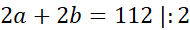 W tym zadaniu oblicz kąty, jakie tworzą przecinające się przekątne prostokąta. Wiadomo, że obwód tego prostokąta wynosi 112, a jego boki różnią się od siebie o 8. Wynik podaj z dokładnością do 1°.