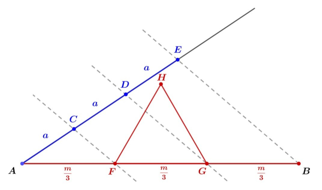6. Z twierdzenia Talesa wynika, że każdy z odcinków AF, FG i GB mają równe długości wynoszące