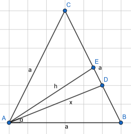 Oblicz tangens kąta DAB, jeśli na boku BC równobocznego trójkąta ABC wybrano taki punkt D, że stosunek pola trójkąta ADB do pola trójkąta ADC wynosi 1:2.