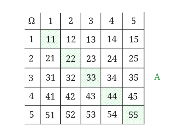 Ω – Liczby utworzone z wszystkich możliwych dwuwyrazowych wariacji zbioru podanego w treści zadania.
