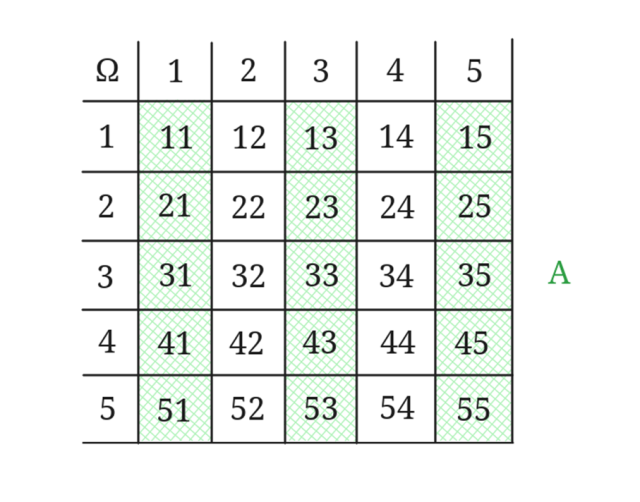 Ω – Liczby utworzone z wszystkich możliwych dwuwyrazowych wariacji zbioru podanego w treści zadania.