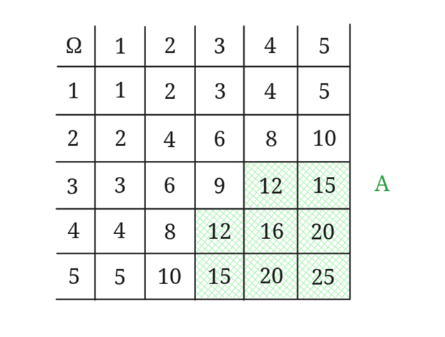 Ω – Iloczyn par cyfr z wszystkich możliwych dwuwyrazowych wariacji zbioru podanego w treści zadania.