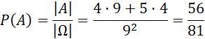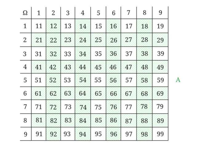 Ω – Liczby utworzone z wszystkich możliwych dwuwyrazowych wariacji zbioru podanego w treści zadania.