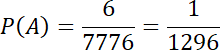 Opisz prawdopodobieństwo zdarzenia, że wszystkie osoby wysiądą na jednym piętrze (kolejność wychodzenia z windy na jednym piętrze nie jest istotna), jeśli na parterze bloku, mającego oprócz parteru 6 pięter, wsiadło do windy 5 osób.