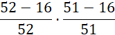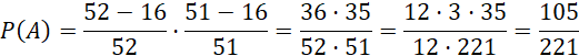 Wyznacz prawdopodobieństwo, że wśród wylosowanych kart żadna nie jest asem ani pikiem, mając standardową talię kart, z której losujemy dwa razy po jednej karcie bez zwracania.