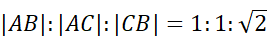 Jeśli środek okręgu opisanego na trójkącie ABC należy do boku AB, to znaczy, że AB jest średnicą okręgu, a trójkąt jest prostokątny. Trójkąt ABC jest połową kwadratu.