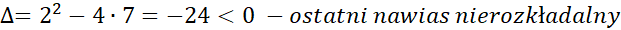 Musisz przekształcić podany wielomian do postaci iloczynowej nierozkładalnych czynników.
