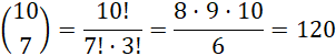 Dany jest zbiór o mocy 10 oraz jego podzbiór o mocy 7. Wyznacz ilość możliwych takich podzbiorów.