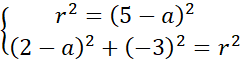 to jego promień. Podane punkty i wyznaczony środek podstaw pod ten wzór. Zauważ, że powstanie układ dwóch równań z dwoma niewiadomymi, rozwiąż go i zapisz szukane równanie okręgu.