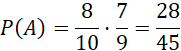 Dane jest pudełko, a w nim – kule. Dwie z nich są czerwone, trzy są białe, pięć jest niebieskich. Wiedząc, że kule są rozróżnialne, oraz że losujemy kolejno dwie kule bez zwracania, oblicz prawdopodobieństwo wylosowania kul o kolorze różnym od czerwonego.