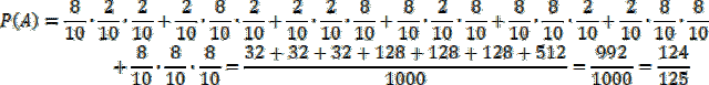 Wypisz wszystkie liczby sprzyjające podanemu zdarzeniu sumując iloczyny prawdopodobieństw dla każdej z liczb.