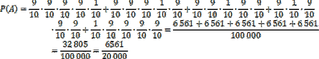 Wyznacz prawdopodobieństwo zdarzenia, że biatlonistka w jednej serii trafi do celu cztery razy, jeśli w pojedynczym strzale trafia do celu z prawdopodobieństwem 0,9, a na zawodach jedna seria strzałów składa się z 5 prób.