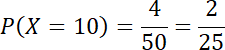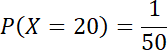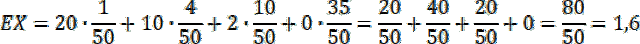 Zapisz rozkład zmiennej losowej X i oblicz jej wartość oczekiwaną, jeśli w pudełku znajduje się 50 kul. Na jednej kuli jest liczba 20, na czterech kulach jest liczba 10, na dziesięciu kulach jest liczba 2, a na pozostałych kulach jest liczba 0. Gracz wyciąga losowo jedną kulę z pudełka, a zmienna losowa X przyjmuje wartość równą liczbie na wyciągniętej kuli.