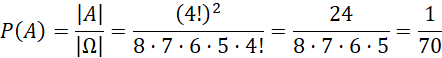 W szereg ustawiono 4 kobiety i 4 mężczyzn. Wyznacz prawdopodobieństwo, że na początku szeregu stoją wszystkie kobiety, a następnie mężczyźni.