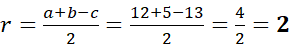 W tym zadaniu musisz obliczyć promień okręgu wpisanego w trójkąt prostokątny, którego przyprostokątne mają długość: 12 cm i 5 cm.