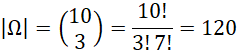Ω – Ilość wszystkich możliwych trzyelementowych zbiorów spośród 10 kul