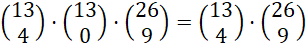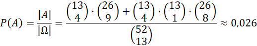 Każdy z kolorów składa się z 13 kart. Po wybraniu 4 kierów należało albo dobrać pozostałe 9 kart niebędących ani kierem, ani treflem, albo dobrać jednego trefla i pozostałe 8 kart.