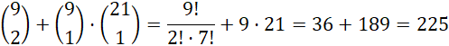 Warunki zadania spełniają sytuacje, gdy dwie osoby uczą się języka niemieckiego (z grupy 9 osób wybierane są 2) lub tylko jedna uczy się tego języka (z grupy 9 i 21 osobowej wybierane są po 1).