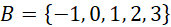 Zbiór B to zbiór liczb całkowitych, większych lub równych -1 i mniejszych lub równych 3, a więc: