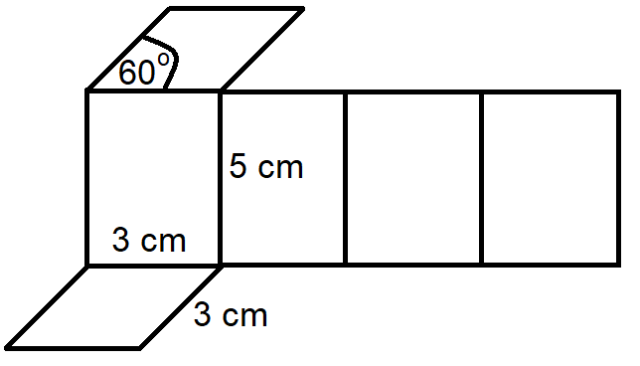 Skorzystaj z tego, że ściany boczne tego graniastosłupa to prostokąty o bokach 5 cm i 3 cm.