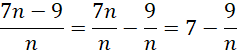 . Po skróceniu pierwszego ułamka przez n, dostaniesz liczbę 7, która należy do naturalnych. Zatem jedyne naturalne wyniki wyrażenia zostaną osiągnięte dla