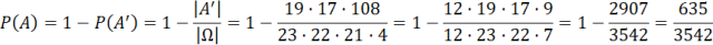 a następnie skorzystaj ze wzoru na prawdopodobieństwo klasyczne i wzoru na prawdopodobieństwo zdarzenia przeciwnego.
