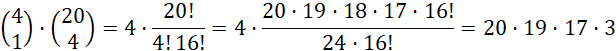 Ilość zdarzeń, w których wylosowano dokładnie jednego asa wynosi: