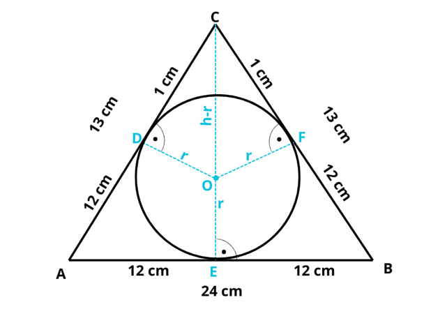 Użyj twierdzenia Pitagorasa do obliczenia wysokości. Wykorzystaj twierdzenie o odcinkach stycznych: odcinki dwóch stycznych poprowadzonych do danego okręgu z punktu leżącego na zewnątrz okręgu, wyznaczone przez punkt i punkty styczności, są sobie równe.