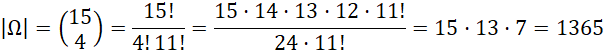 Ω - Ilość wszystkich możliwych czteroelementowych zbiorów spośród 15 kopert.