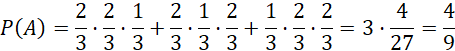 Spośród nich znajdź sytuacje, w których kolor czerwony wypada dokładnie jeden raz i określ prawdopodobieństwo rozpatrywanego zdarzenia sumując iloczyny prawdopodobieństw przy poszczególnych rozgałęzieniach.