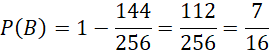 Zauważ, że łatwiej policzyć zdarzenie przeciwne do omawianego. Zrób to, a następnie skorzystaj z własności: P(A) = 1 – P(A’).