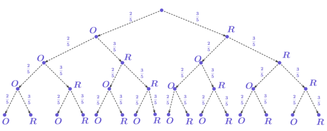 Oznaczenia: O – wyrzucenie orła, R – wyrzucenie reszki