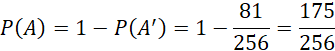 Wyznacz prawdopodobieństwo rozpatrywanego zdarzenia korzystając z własności: P(A) = 1 – P(A’).