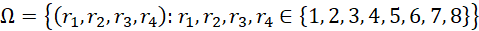 Przeanalizuj doświadczenie losowe. Zauważ, że przestrzenią zdarzeń elementarnych będzie ciąg pewnych czterech elementów, gdzie każdy z nich reprezentuje wyrzucenie jednej z ośmiu podanych liczb.