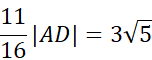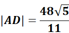 Oblicz |AO| z twierdzenia Pitagorasa. Znajdź trójkąty podobne i skalę podobieństwa. Na podstawie skali oblicz |AD|.