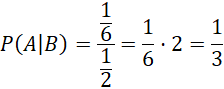 Wykonywany jest jeden rzut standardową sześcienną kostką. Dane jest zdarzenie polegające na tym, że wypadła liczba 5 wiedząc, że wypadła liczba oczek niepodzielna przez 2.