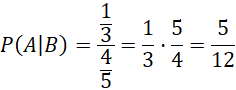 Wprowadź odpowiednie oznaczenia i zbadaj czym jest część wspólna zdarzeń A i B. Następnie wyznacz wartości prawdopodobieństw z licznika i mianownika.