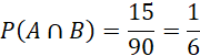 Częścią wspólną zdarzeń A i B będzie wylosowanie kobiety trenującej siatkówkę. Z tabeli można odczytać, że osób takich jest 15. Cała grupa w klubie liczby 90 osób. Prawdopodobieństwo tego zdarzenia wynosi więc: