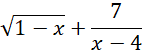 Przeanalizuj podane wyrażenie i określ założenia jakie muszą spełniać liczby wewnątrz niego, aby obecne w nim działania były wykonalne. W tym przypadku liczba x musi być różna od 4, ponieważ inaczej wyrażenie w mianowniku ułamka byłoby równe 0, a nie można dzielić przez 0 oraz x musi być mniejsze lub równe 1, ponieważ inaczej wyrażenie pod pierwiastkiem byłoby ujemne, a nie można pierwiastkować liczb ujemnych. Na końcu zauważ, że w miejsce zmiennej x można wstawić dowolną liczbę mniejszą lub równą 1 oraz przedstaw to jako zbiór D (liczba 4 i tak jest większa od 1).