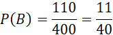 Firma C wyprodukowała łącznie 15 + 20 + 75 = 110 czekolad. Prawdopodobieństwo wylosowania którejś z nich spośród wszystkich 400 tabliczek wynosi więc: