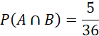 Częścią wspólną zdarzeń A i B będzie wyrzucenie piątki na jednej kostce i liczby 4, 5 lub 6 na drugiej (aby suma oczek była większa od 8). Z tabeli wyżej odczytaj, że liczb spełniających ten warunek jest 5. Oznaczone są one w tabeli kolorem fioletowym