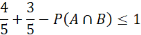 Rozpatrz prawdopodobieństwo sumy zdarzeń A i B. Z definicji prawdopodobieństwa wynika, że jest ona zawsze mniejsza bądź równa 1: