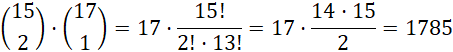 Z pewnej klasy wybierane są jednocześnie 3 osoby w taki sposób, że są wśród nich minimum dwie dziewczyny. Wyznacz ilość możliwych takich delegacji wiedząc, że klasa ta liczy 15 dziewcząt oraz 17 chłopców.